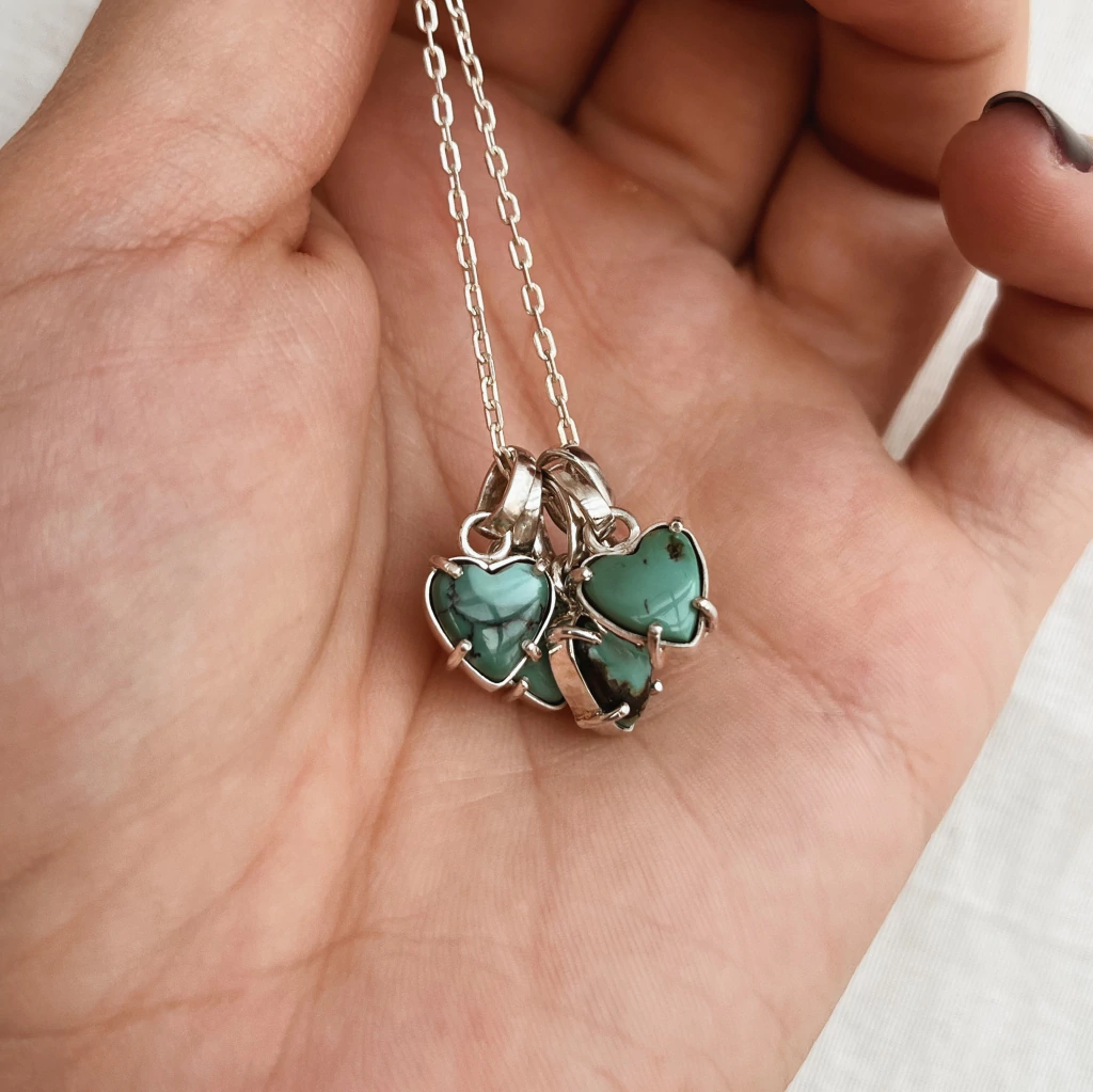 Dije de plata 925 hecho a mano, drop de stock limitado. Este dije presenta un engarce de piedra natural turquesa, conocida por sus propiedades protectoras, ha sido usada para hacer amuletos desde tiempos inmemorables. La turquesa fomenta la comunicación con los mundos físico y espiritual. Potencia la intuición y la meditación. Libera antiguos votos, inhibiciones y prohibiciones. Explora las vidas pasadas y muestra que la creación de tu propio destino es un proceso continuo y depende de lo que hagas a cada momento. Promueve la autorrealización, ayuda a resolver problemas y calma los nervios cuando uno tiene que hablar en público. La turquesa es una piedra que fortalece, disuelve la actividad de mártir o el auto sabotaje. Su vibrante color que evoca el mar y la naturaleza.